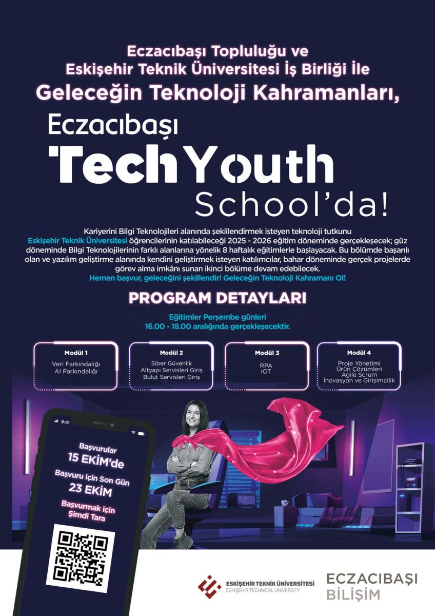 Eczacıbaşı Topluluğu ve Eskişehir Teknik Üniversitesi iş birliğinde gerçekleşen, kariyerini Bilgi Teknolojileri alanında şekillendirmek isteyen teknoloji tutkunu gençlere yönelik özel olarak tasarlanan 8 haftalık akademi programına katıl, Geleceğin Teknoloji Kahramanları arasında yerini al!